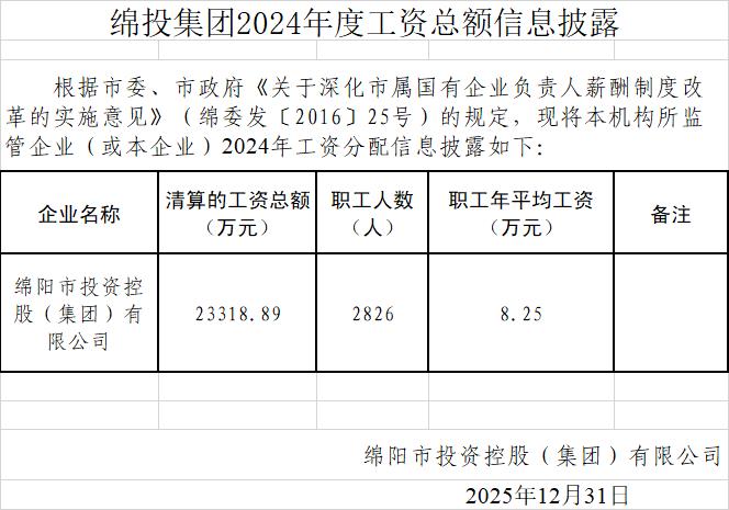 綿投集團2024年負責人薪酬和工資總額執(zhí)行情況