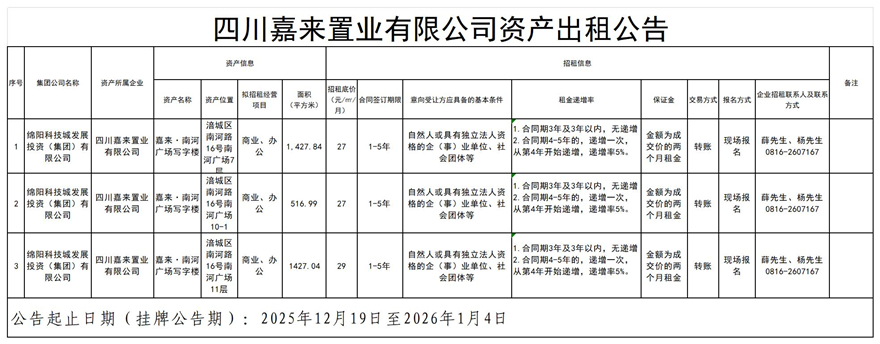 四川嘉來置業(yè)有限公司資產(chǎn)出粗公告