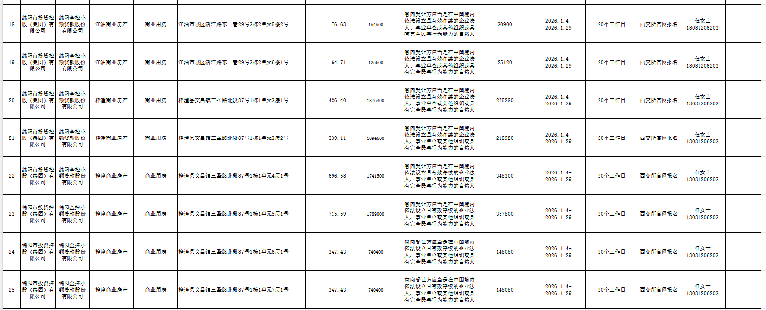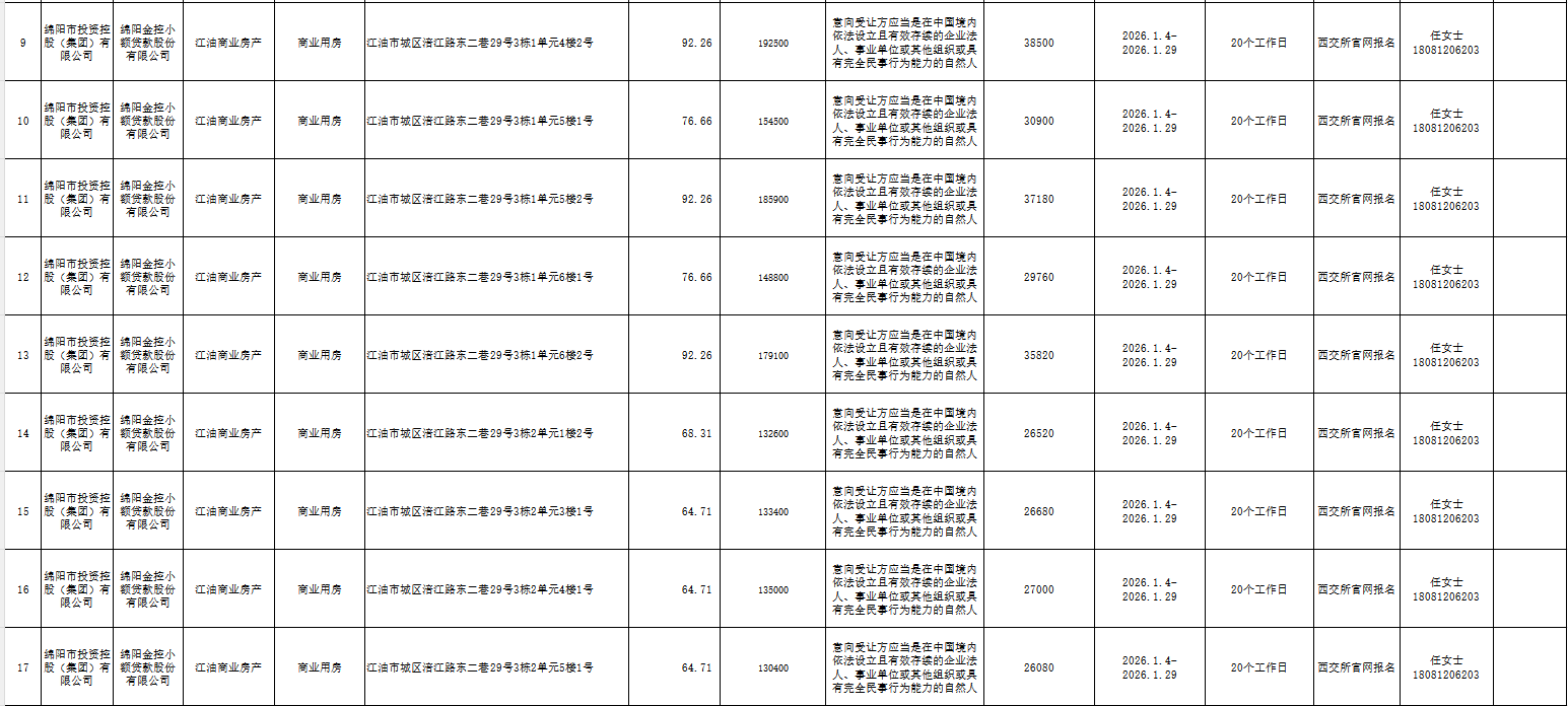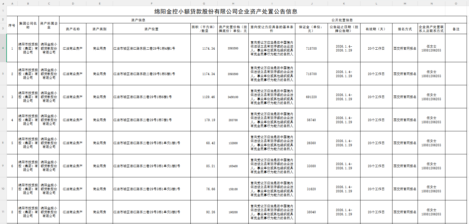 綿陽金控小額貸款股份有限公司企業(yè)資產(chǎn)處置公告信息