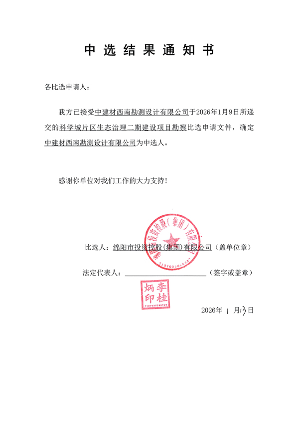 科學(xué)城片區(qū)生態(tài)治理二期建設(shè)項(xiàng)目勘察中選結(jié)果通知